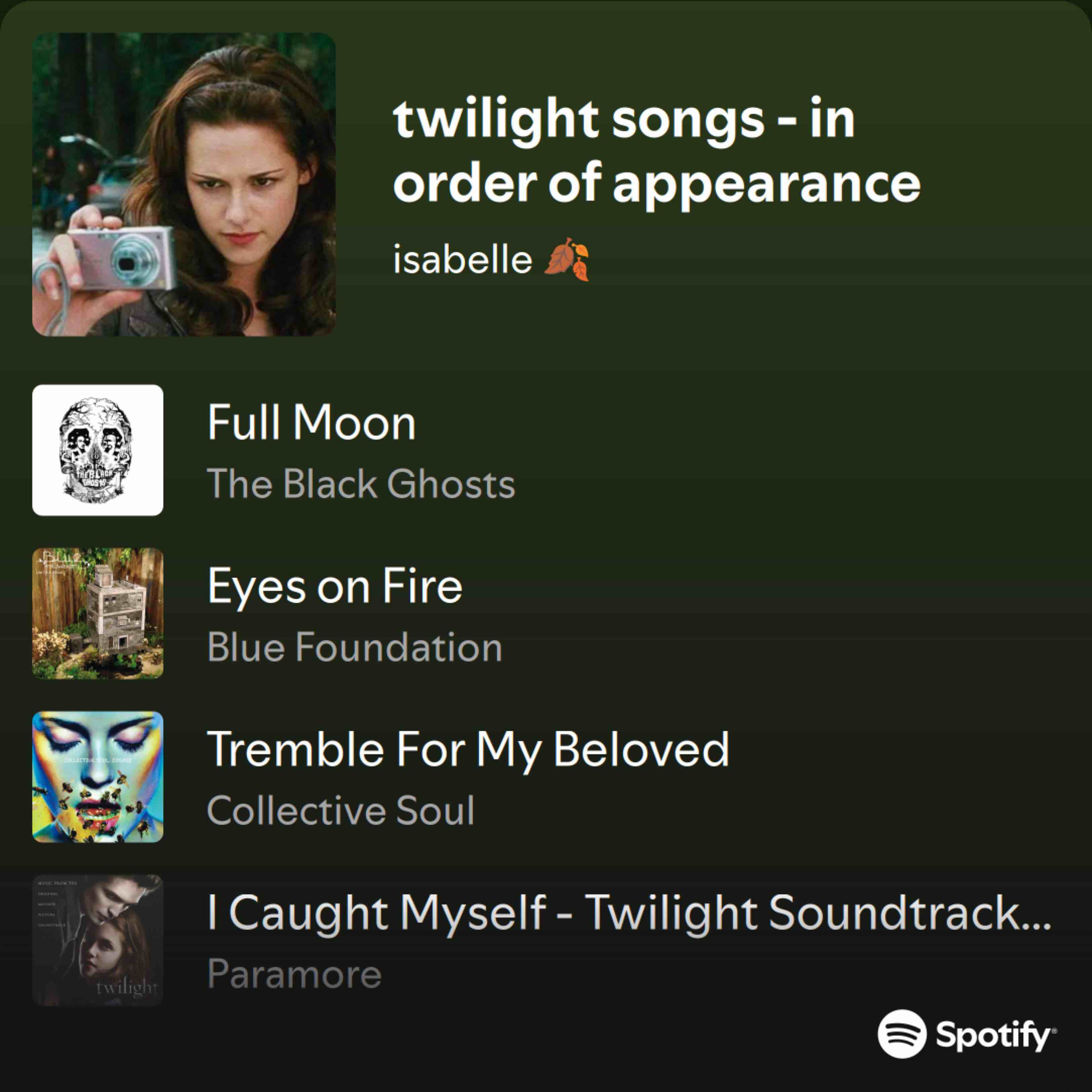 I have to say, the Twilight soundtracks (across all the movies) are some of the best of all time. (Yes, there is a full Spotify playlist that collects them all.)
