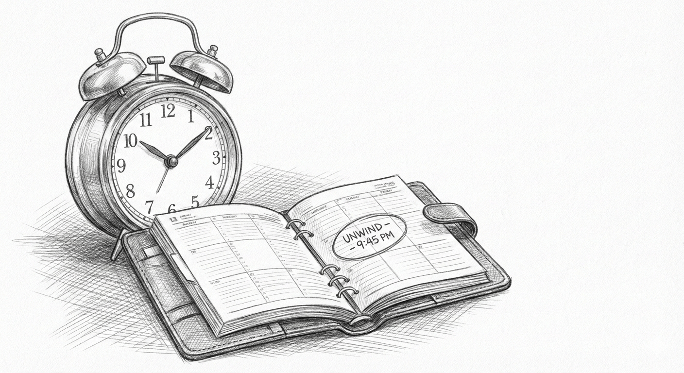 Truthfully, I started calendaring an "unwind" block for myself on my calendar. Nothing crazy. Its ~9:45 PM. But even seeing that alert every day has helped me a bit. It is a visual reminder that my rest is a commitment worth keeping.