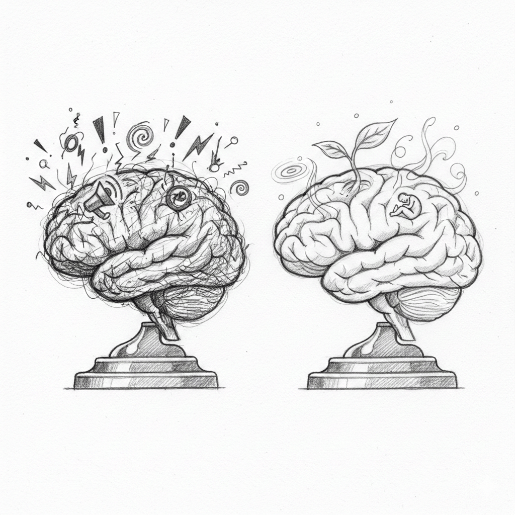 This past week, I listened to a fascinating episode of On Purpose with Jay Shetty featuring neuroscientist Emily McDonald (linked). During their conversation, Emily shared an analogy that really shifted my perspective on self-talk. She asked us to imagine a student sitting in a classroom while being bullied. In that state of constant alarm, the child cannot possibly focus on the teacher or absorb the lesson because their nervous system is entirely occupied with survival and safety.