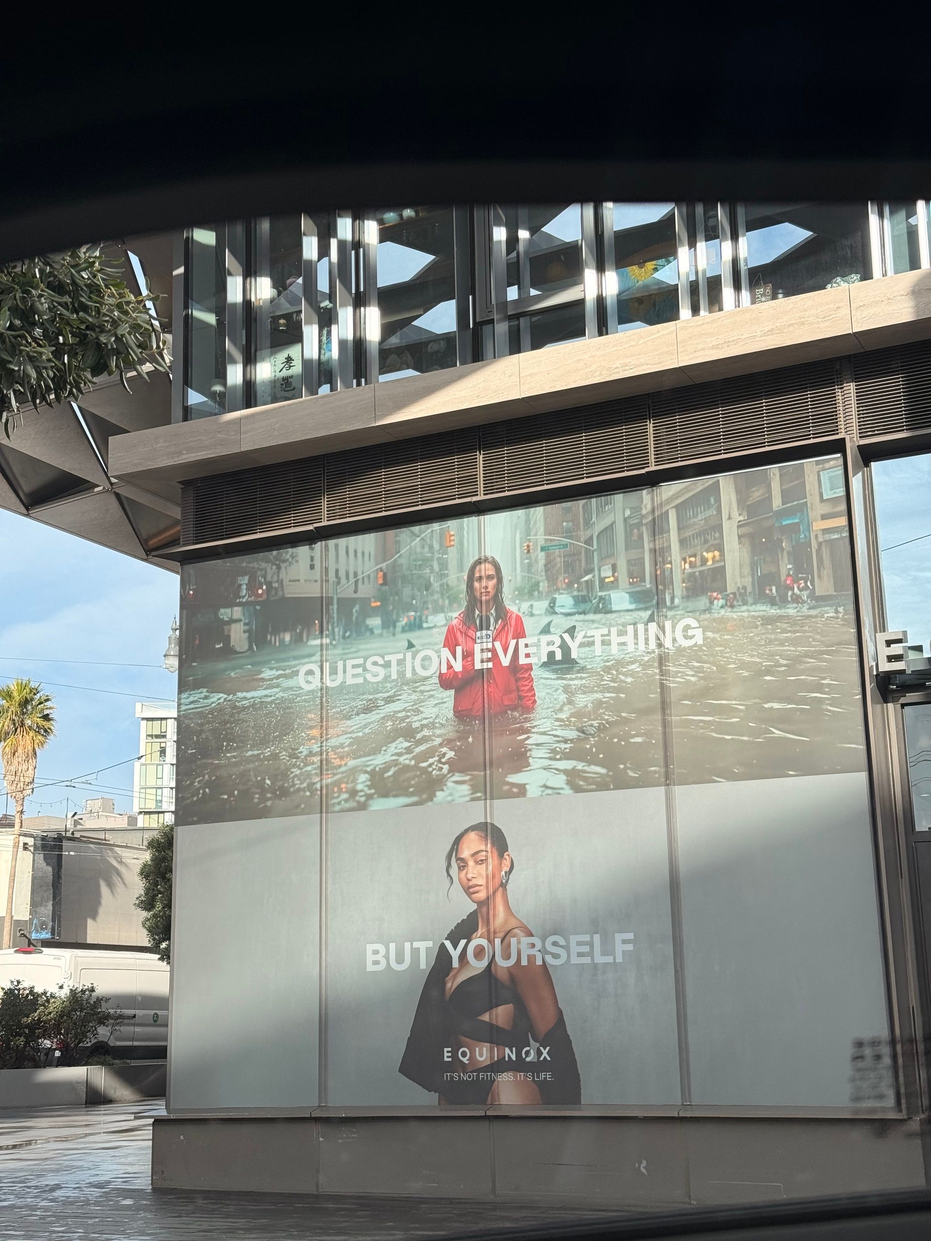 I was stopped at a red light last week and this Equinox advertisement caught my eye. I often find myself searching for small signs or sparks of inspiration throughout my day for TR9, and this ad + the timing of me being the guest car to be stopped at light felt like a sign…or even a call from the ad itself…for me to notice it. Despite being a simple phrase, I’d argue it’s quite difficult to put that sentiment into practice when we aren’t feeling like our strongest selves. Let’s analyze the composition of the ad…what do you take away? I immediately jump to a message of mental resilience.
